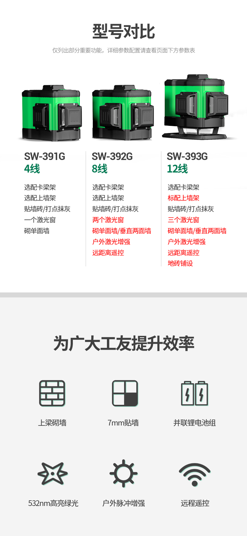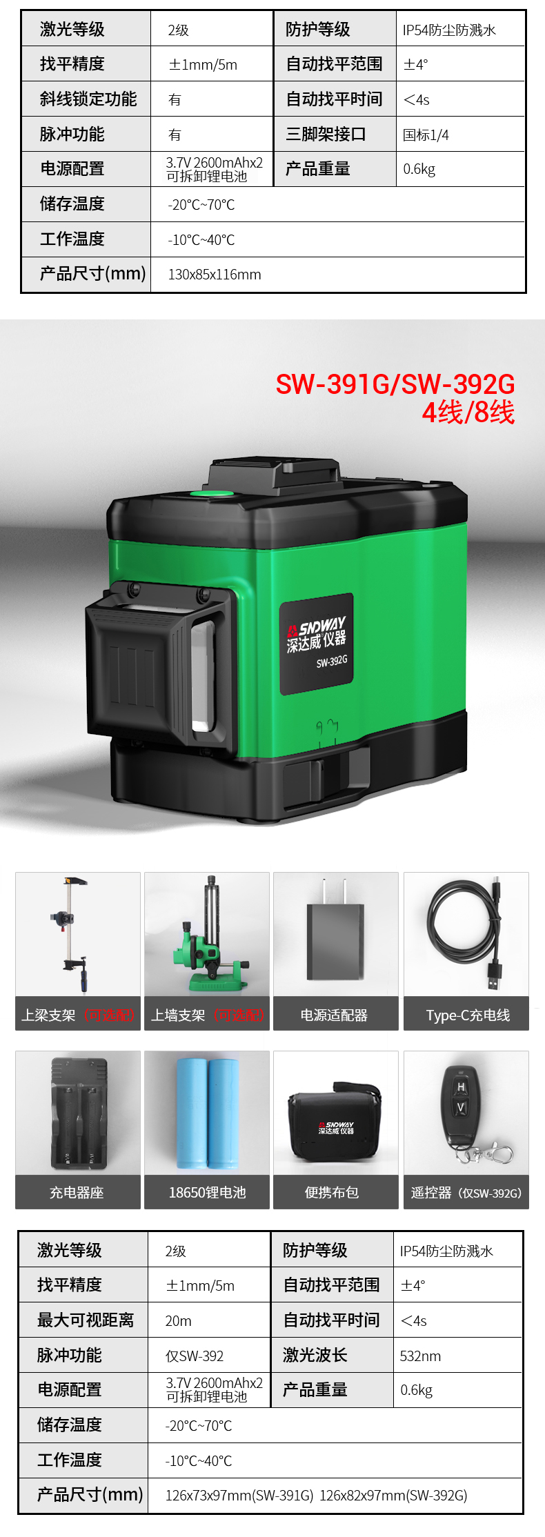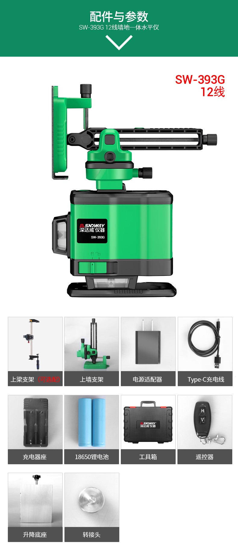 深达威SW-391G/SW-392G/SW-393G 水平仪激光贴地贴墙仪
